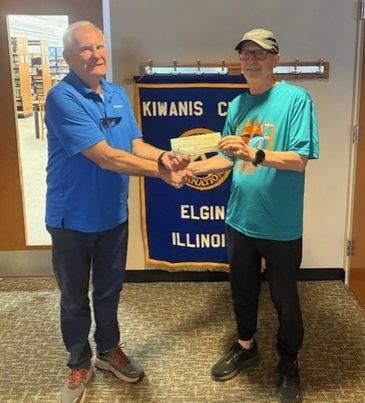 Ed Bates (right) presenting check to Kiwanis President Rick Poulton.